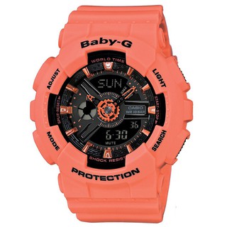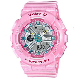 Offers sleek sophistication shock-proof durability for the active woman - Discover your BABY-G now. Common features of Casio Baby-G are 100 to 200 meter water resistance shock resistant digital dial stopwatch and atomic time keeping. This rich lineup of products is perfect for active women perfect for staying on-time in day-to-day living and for use in sports. Fully equipped with various functions like solar chargers time adjustment via radio waves shock resistance and water resistance. BA110PL-7A1 BA110 Series 120. The Casio Baby-G sport watch lineup offers the same toughness and shock resistance of a G-Shock with a smaller form factor and fashionable designs for women. BABY-Gs Tough and Cool outlook with appeal for women who lead active lives.